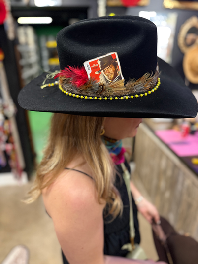 At the heart of the Hat Bar is Alexa Albrecht, owner and sole designer of local small business BunnyDoll Designs. A Texas native, Alexa is known for her one-of-a-kind, handmade gemstone jewelry and custom hat creations- specializing in both men's & women's designs. Her work draws inspiration from modern Western and coastal influences, blending authenticity with artistry to deliver truly unforgettable pieces.
