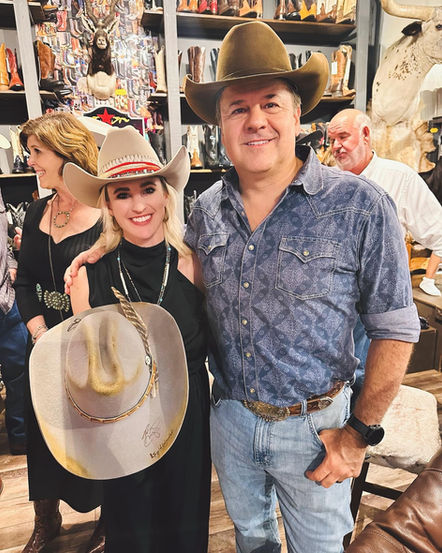 At the heart of the Hat Bar is Alexa Albrecht, owner and sole designer of local small business BunnyDoll Designs. A Texas native, Alexa is known for her one-of-a-kind, handmade gemstone jewelry and custom hat creations- specializing in both men's & women's designs. Her work draws inspiration from modern Western and coastal influences, blending authenticity with artistry to deliver truly unforgettable pieces.